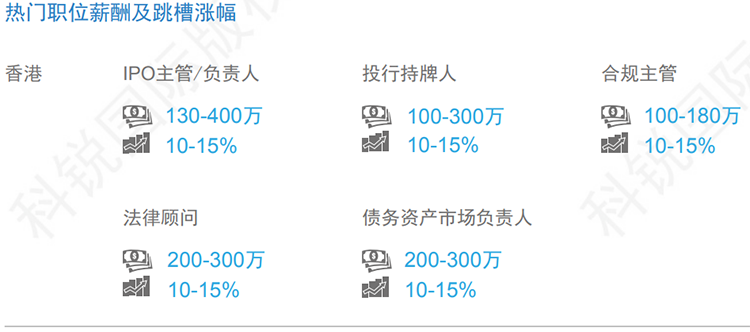 数据来源:猎头公司PA真人视讯国际资深行业专家对2019年热门职位薪酬范围及跳槽涨幅的预测。薪酬为基本年薪。单位为港币。