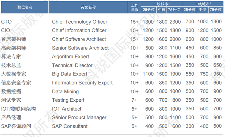 基本年薪*:以人民币1000元为单位,指年度整体的现金收入=年度底薪+年度固定部分奖金